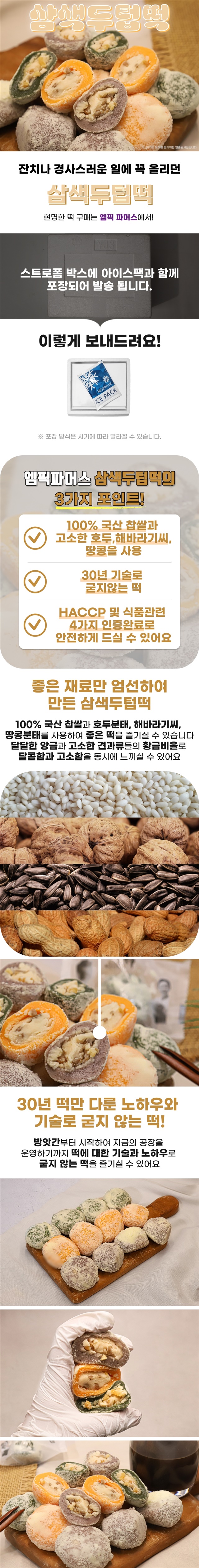 1-1. 제품명 | 한입가득! 달달한 앙금과 고소한 견과류 가득 들은 삼색두텁떡 1.8kg |