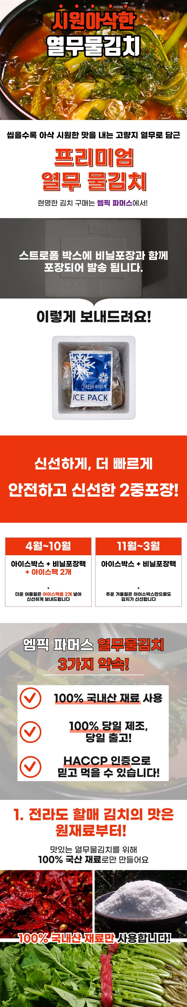 | 1-1. 제품명 | 전라도 비법으로 만든 어린 고랭지 열무물김치 |