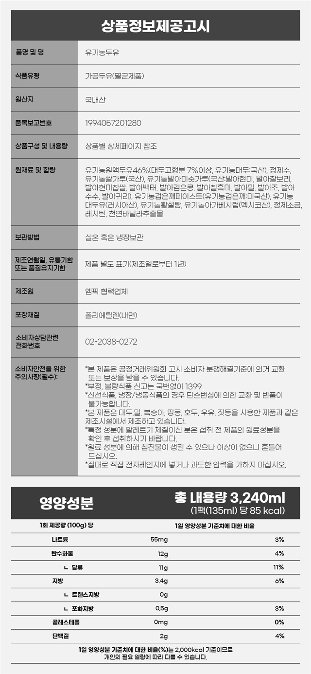귀한 국내산 유기농 콩과 10가지 발아곡물을 담아 만든 두유