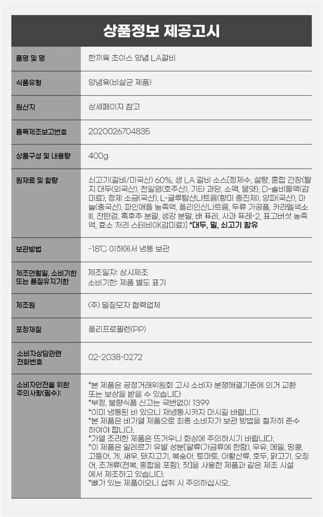 | 1. 「식품 등의 표시ㆍ광고에 관한 법률」 및 「식품등의 표시기준」에 따른 표시사항 | 상품 상세페이지 참조 |
