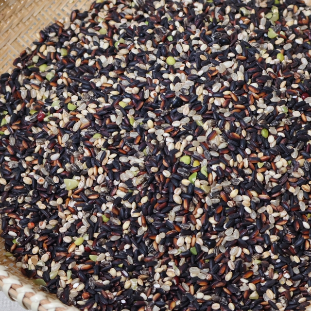 7. 상품구성 | 유기찰흑미 60%, 유기찰보리 14%, 유기검정보리 10%, 유기현미 10%, 유기수수 2%, 유기약콩 2%, 유기적두 1%, 유기서리태 1% |