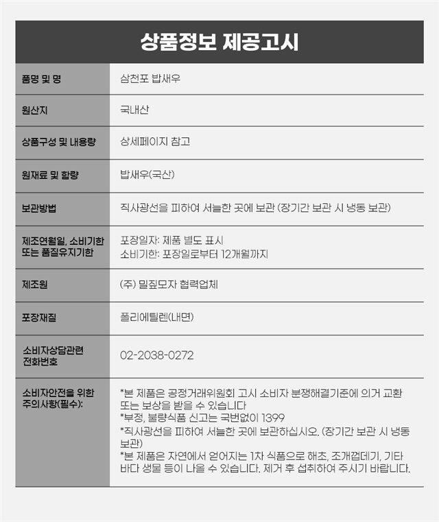 | 9. 소비자 안전을 위한 주의사항 (「식품 등의 표시ㆍ광고에 관한 법률 시행규칙」 제5조 및 [별표 2]에 따른 표시사항을 말함) | 상세페이지참조 |