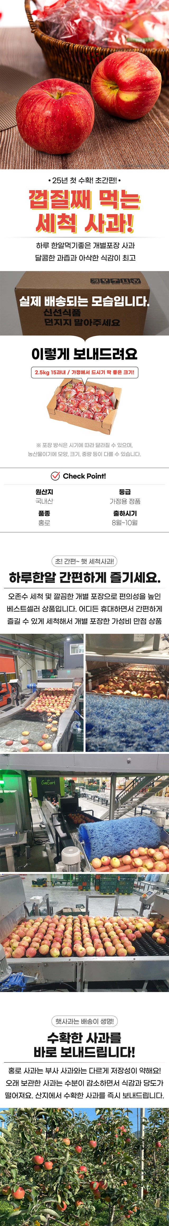 1. 품목 또는 명칭 | 껍질째 먹는 세척 햇 홍로사과 2.5kg(15과내) |