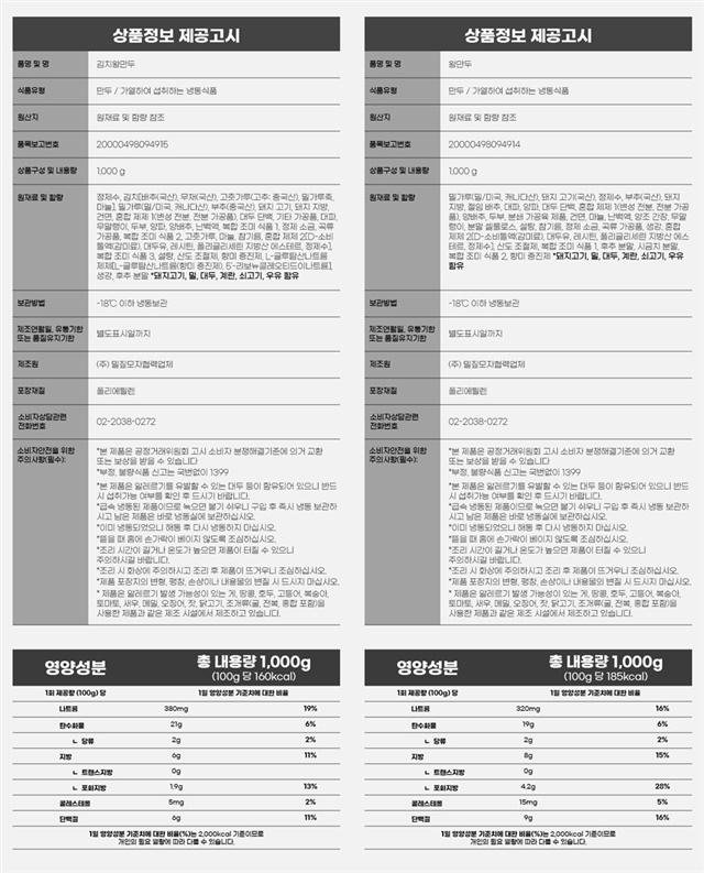 | 1. 「식품 등의 표시ㆍ광고에 관한 법률」 및 「식품등의 표시기준」에 따른 표시사항 | 상품 상세페이지 참조 |