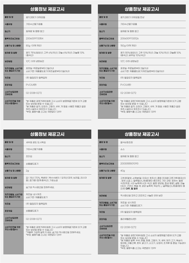 | 9. 소비자 안전을 위한 주의사항 (「식품 등의 표시ㆍ광고에 관한 법률 시행규칙」 제5조 및 [별표 2]에 따른 표시사항을 말함) | 상품 상세페이지 참조 |