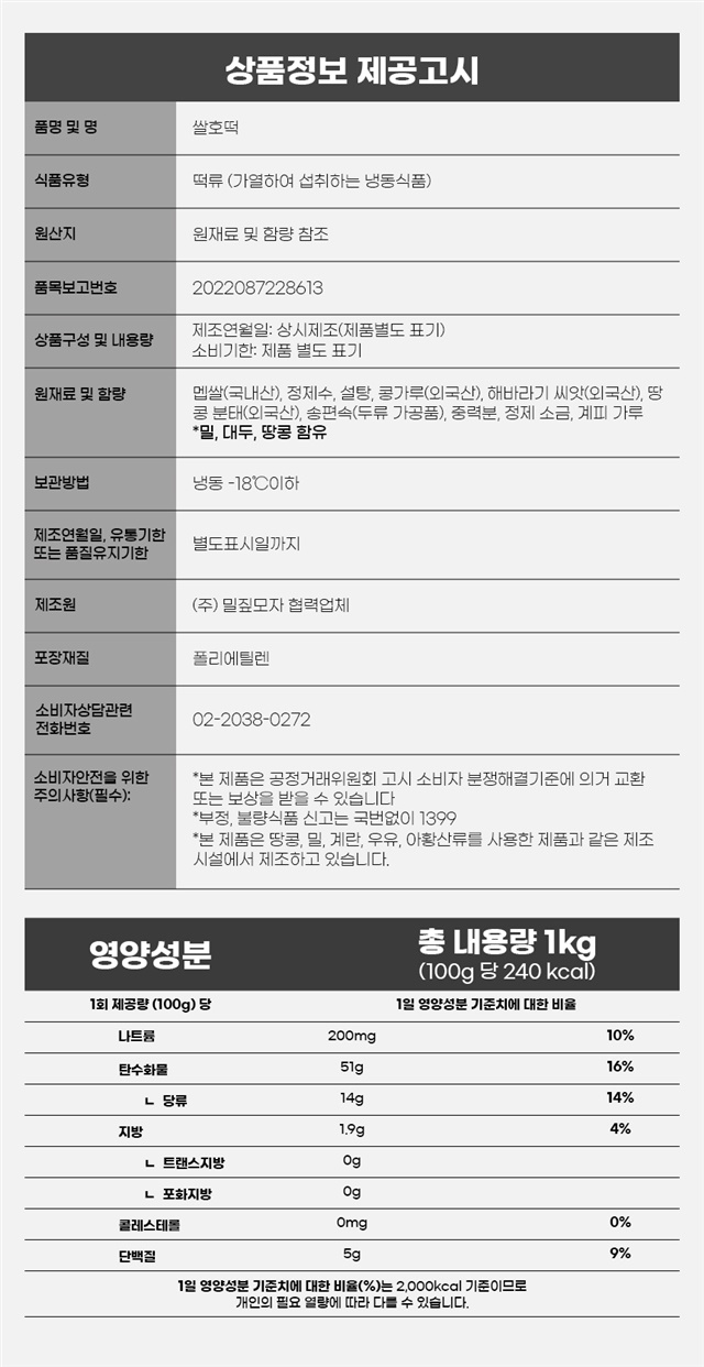 | 1-8. 유전자변형식품에 해당하는 경우의 표시 | 상품 상세페이지 참조 |