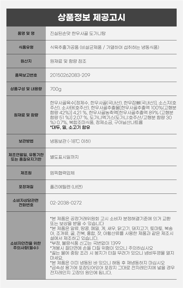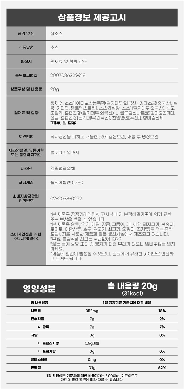 1. 「식품 등의 표시ㆍ광고에 관한 법률」 및 「식품등의 표시기준」에 따른 표시사항 | 상품 상세페이지 참조 |