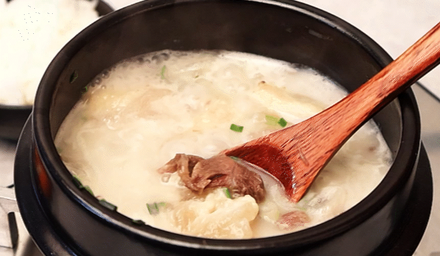 찐득한 한우 사골 국물 반, 호주 청정우 도가니 반