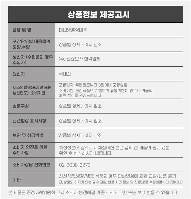 | 9. 소비자 안전을 위한 주의사항 (「식품 등의 표시ㆍ광고에 관한 법률 시행규칙」 제5조 및 [별표 2]에 따른 표시사항을 말함) | 상품 상세페이지 참조 |