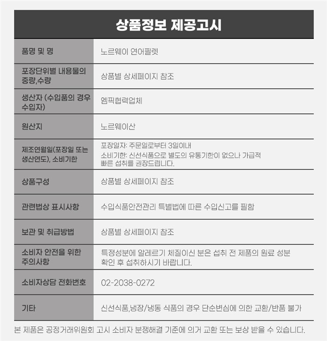 4. 「농수산물의 원산지 표시 등에 관한 법률」에 따른 원산지 | 노르웨이산 |