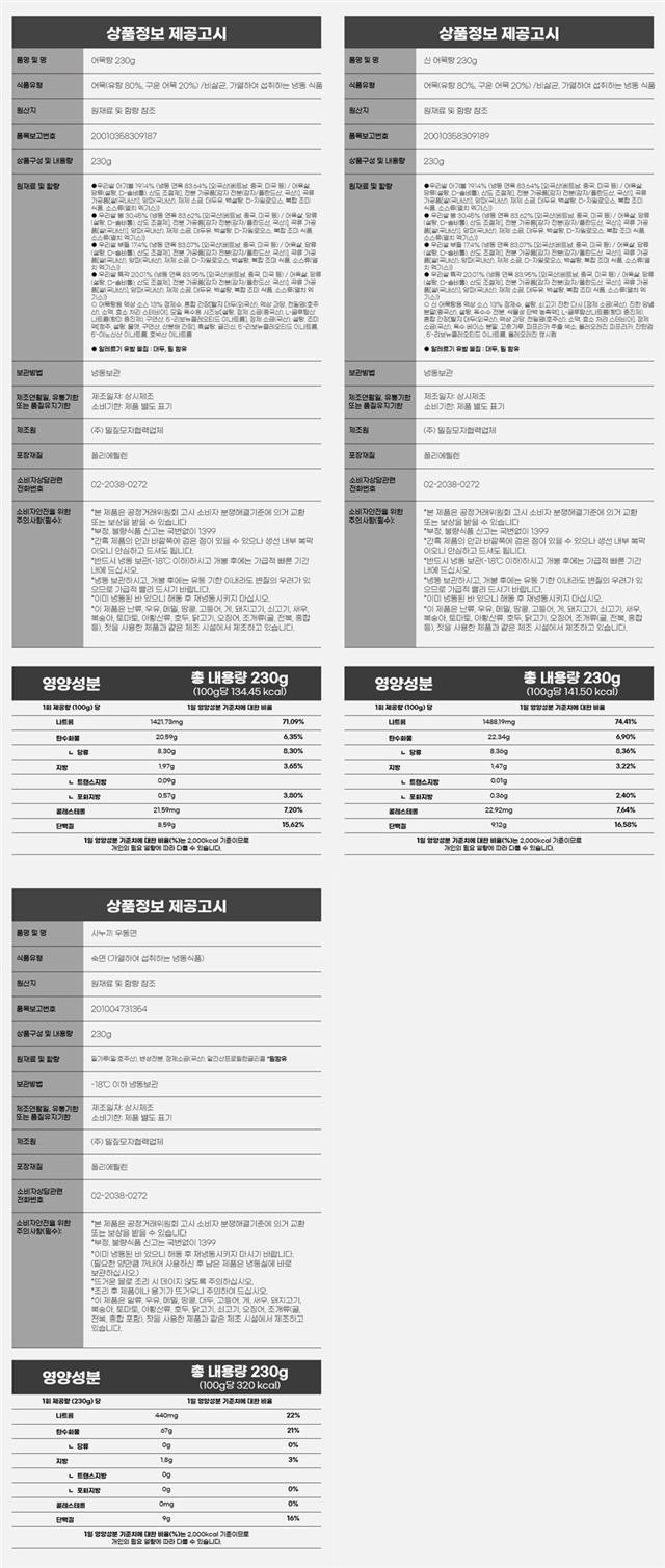 | 1. 「식품 등의 표시ㆍ광고에 관한 법률」 및 「식품등의 표시기준」에 따른 표시사항 | 상품 상세페이지 참조 |