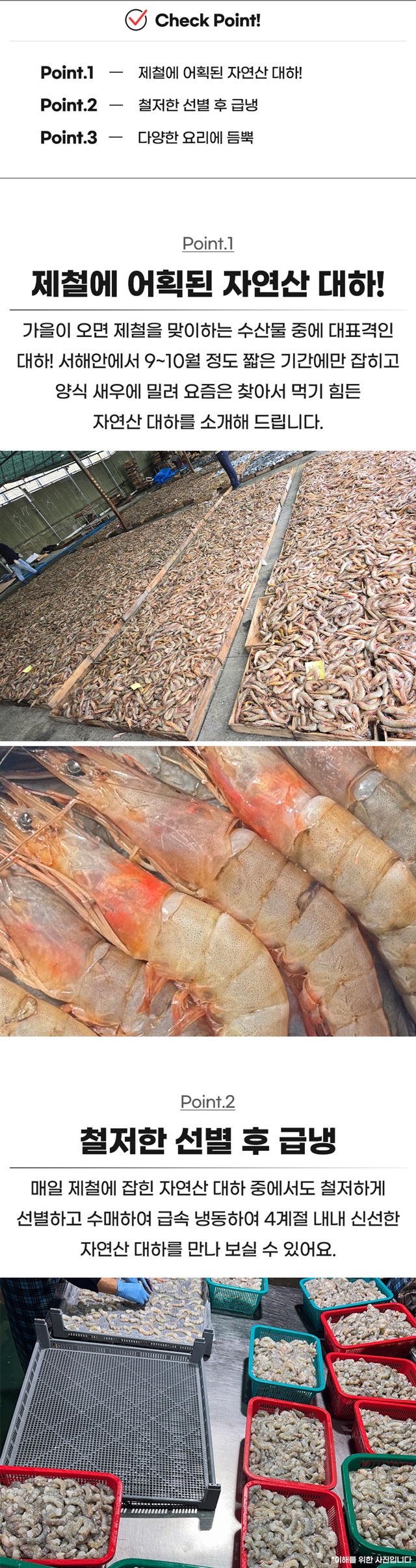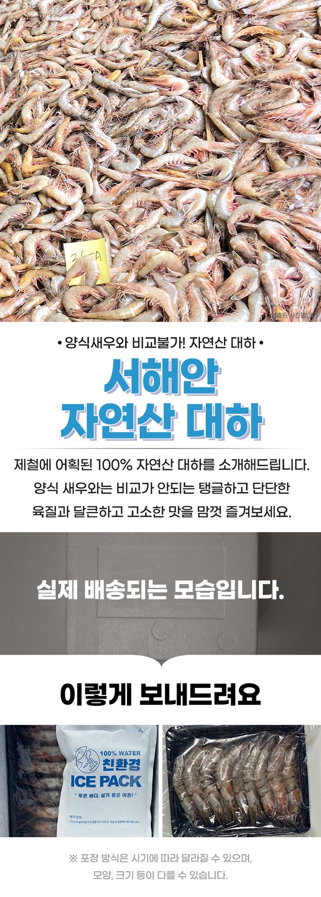제철에 어획하여 신선한 대하만 선별하여 급냉한