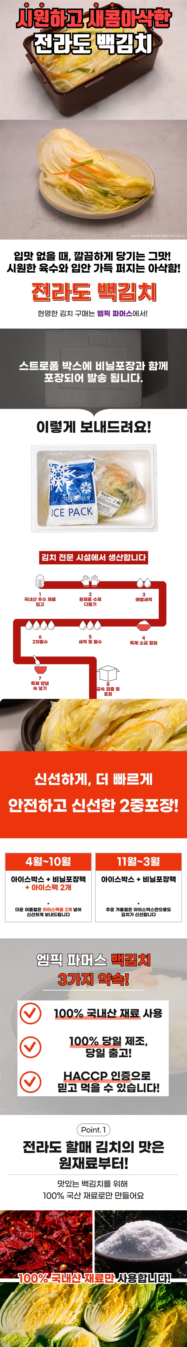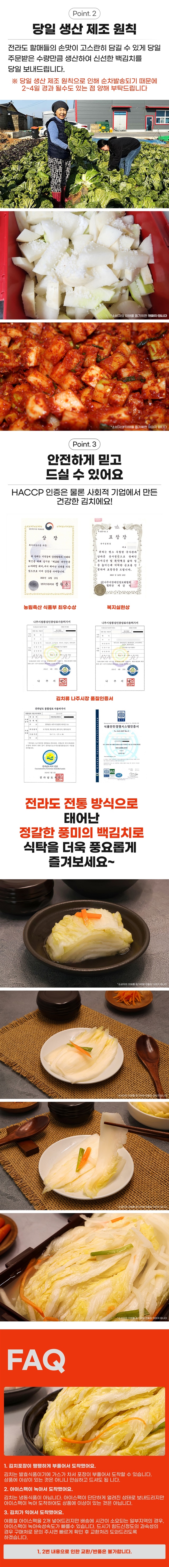 | 1-1. 제품명 | 100% 국내산 재료로 만든 깔끔 시원한 육수의 전라도 백김치 |