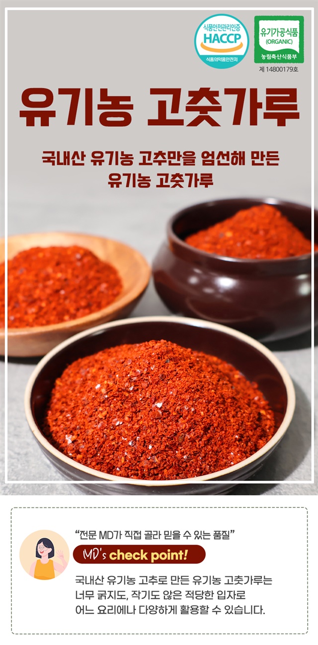 7. 상품구성 | [엠픽] 국내산 고추만을 엄선한 유기농 고춧가루 (500g, 1kg) |