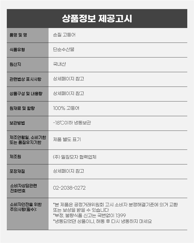 9. 소비자 안전을 위한 주의사항 (「식품 등의 표시ㆍ광고에 관한 법률 시행규칙」 제5조 및 [별표 2]에 따른 표시사항을 말함) | 상품 상세페이지 참조 |