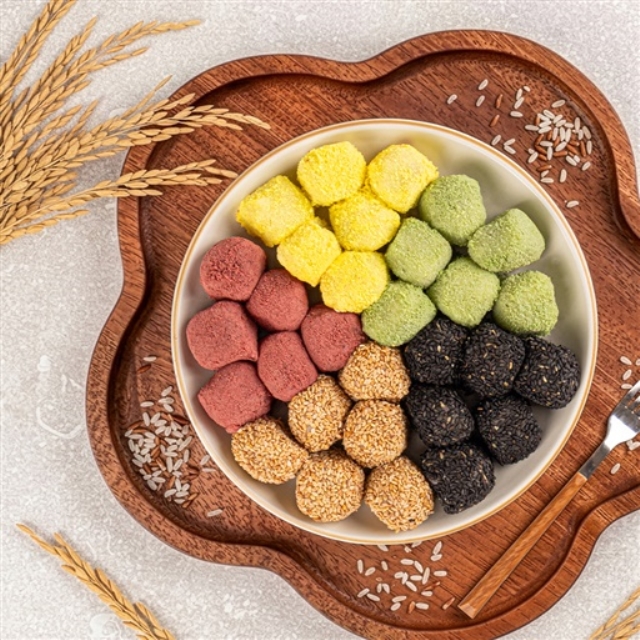 국내산 멥쌀과 천연재료 색을 입힌 달콤한 가득 3색 고소미 꿀떡
